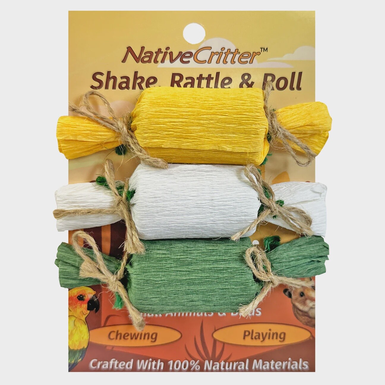 NativeCritter's Shake Rattle And Roll is designed to provide your pet with natural chewing and playing experiences. Featuring natural papers and food-safe colors, this toy offers a variety of textures and includes an enriching noise-making component. Keep your pet’s life enriched with this engaging and boredom-busting toy.